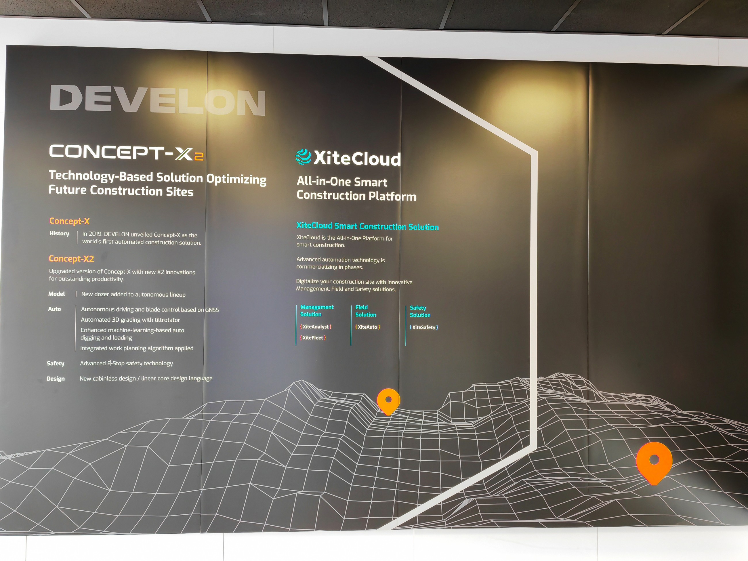 "Concept-X2" is an upgraded version of the unmanned automation solution "Concept-X" launched in 2019. DEVELON excavators and bulldozers without a cab were shown for the first time in this demonstration.