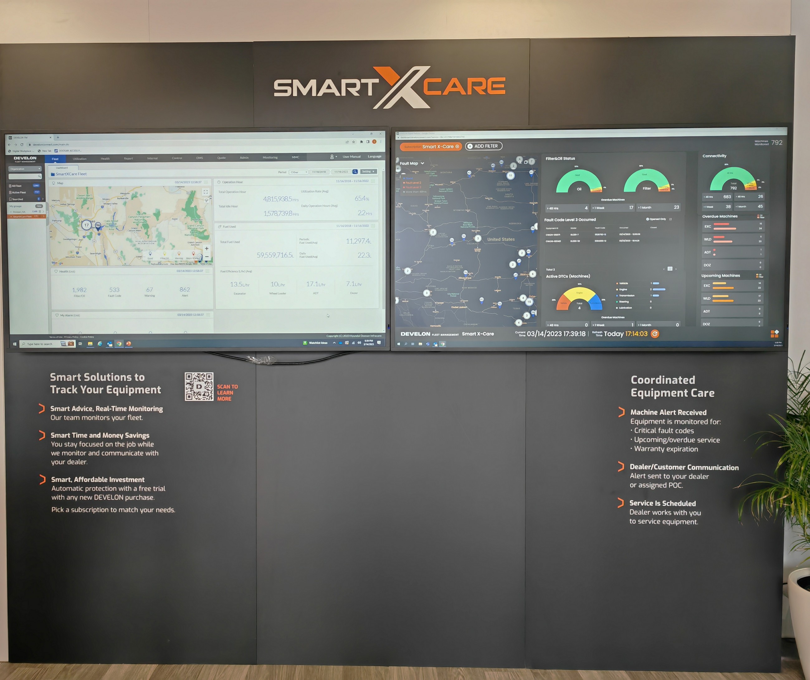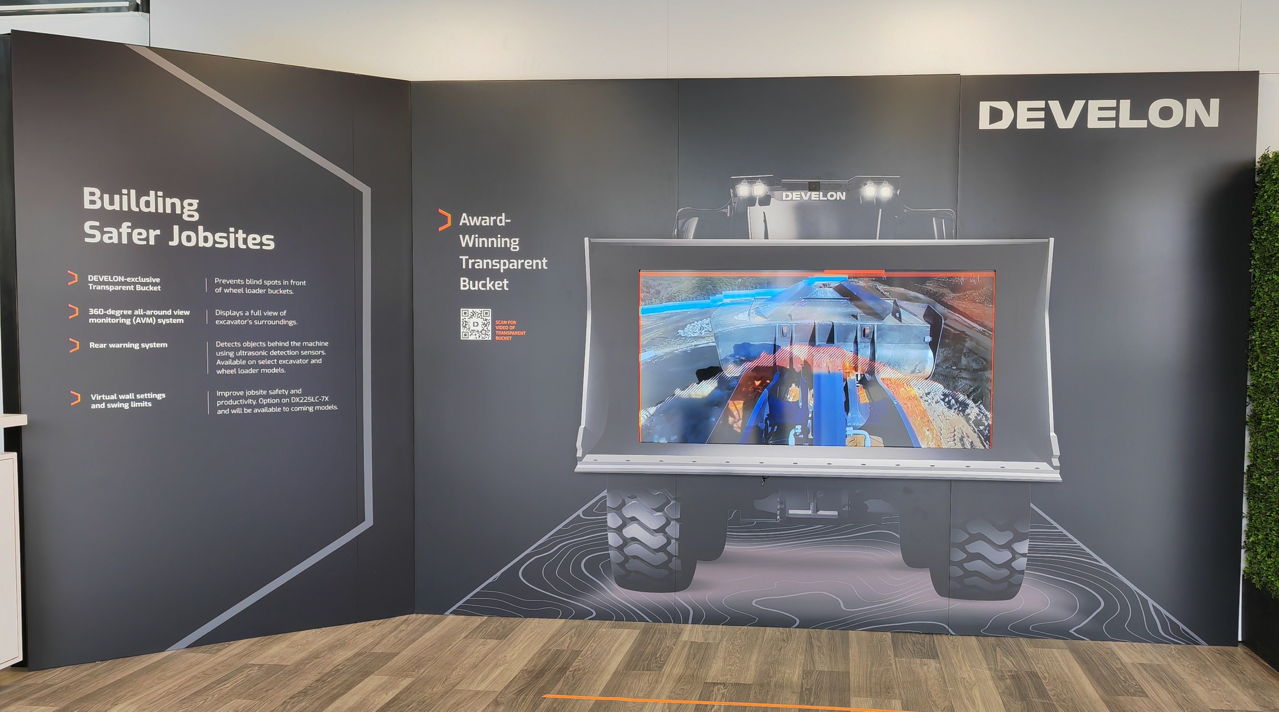 One of the highlights of DEVELON's exhibition is the display of cutting-edge technologies such as Concept-X demonstration, safety features and electrification. The technologies on display indoors include autonomous devices, the new Smart X-Care fleet management service and the Terrain-Scanner Concept X Xite Cloud.